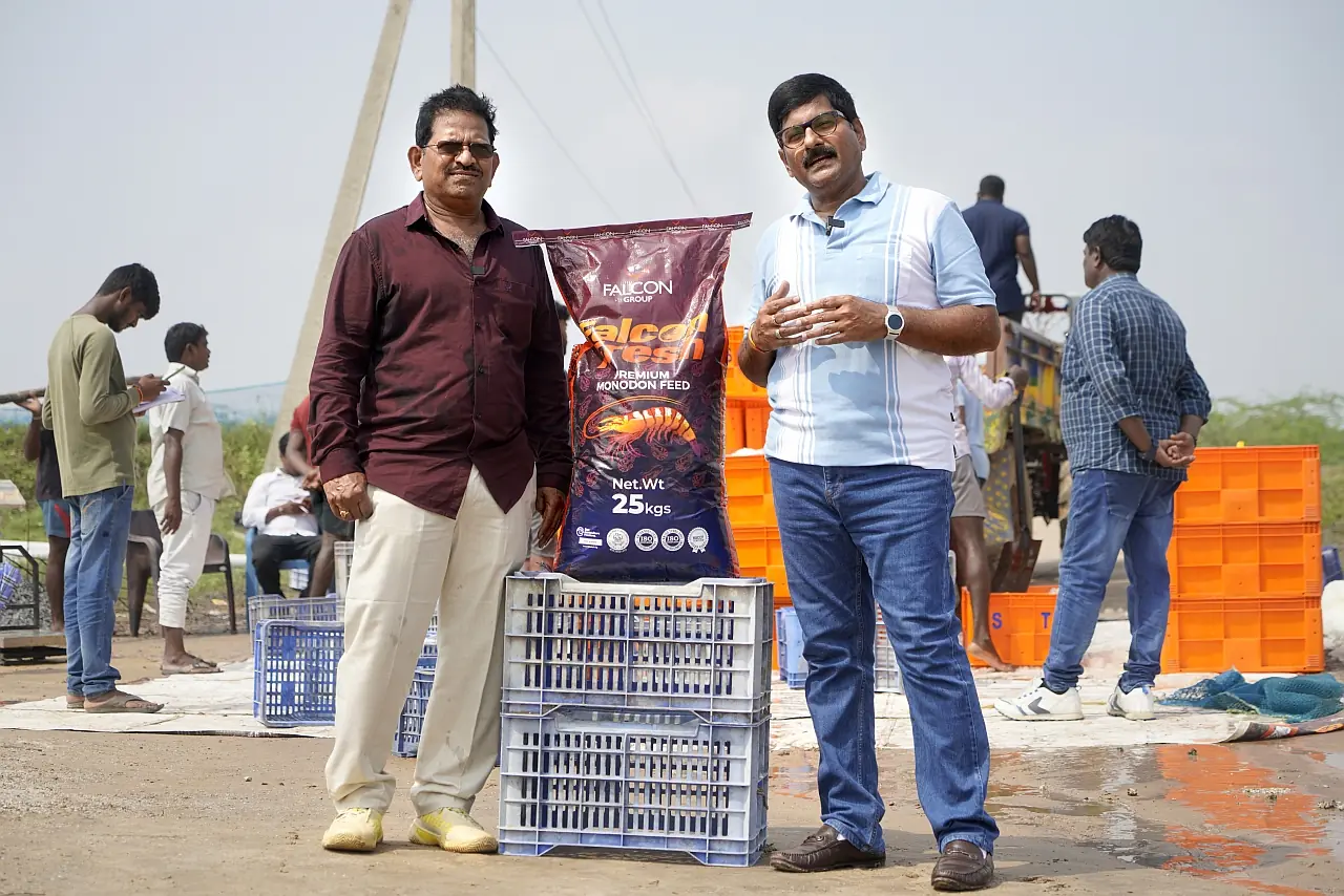 With Falcon, we are doing good farming, with 100 to 150 workers from nearby villages. Falcon gives us credit for 160 to 170 days, which is helpful. Their technical team gives us great support. They also supply shrimp feed on time and as required.